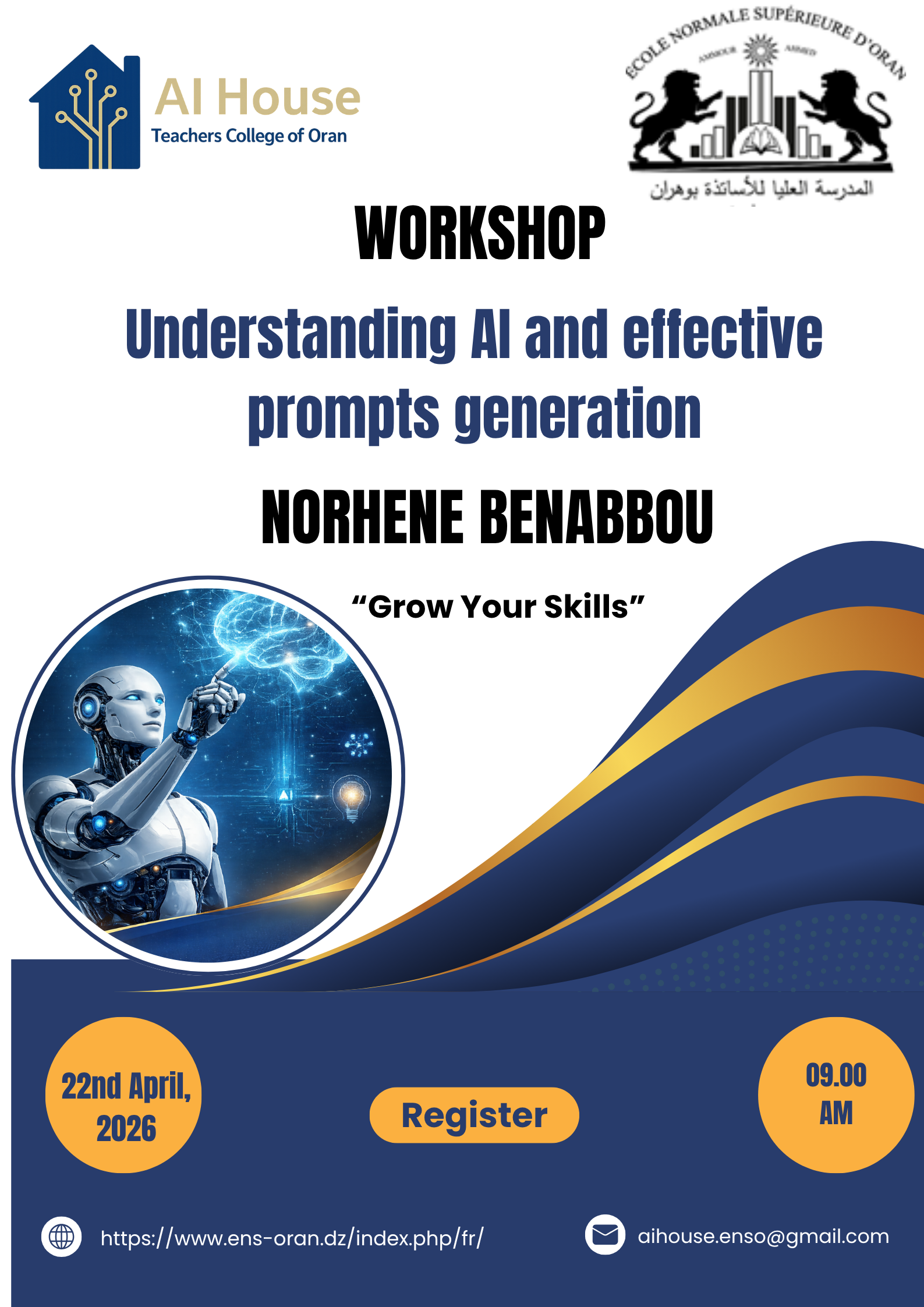 AI House – Teachers College of Oran is pleased to announce that registration is now open for the workshop entitled: